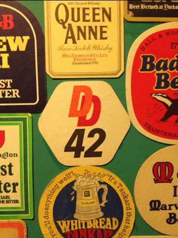 I grew up in an English pub in Torremolinos on the Costa Del Sol in the 80s amid sun and sea, burnt tourists, English hooligans, bad architecture and gay culture. And bar matts. We had towel varieties that sat on the bar but we also had the seemingly now disappearing single beer mat. I saw this collection in my local pub in Peckham and it reminded me of my childhood. It also reminded of the art of the bar mat (which I am sure is celebrated on some Tumblr blog somewhere).
